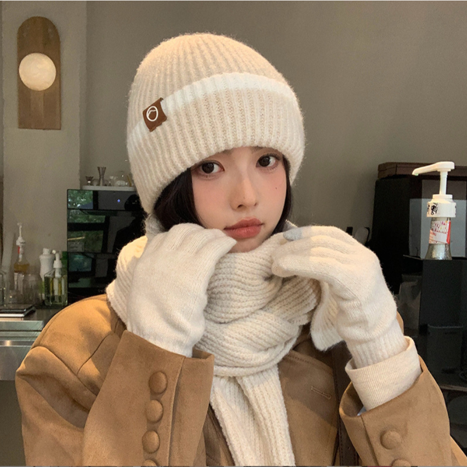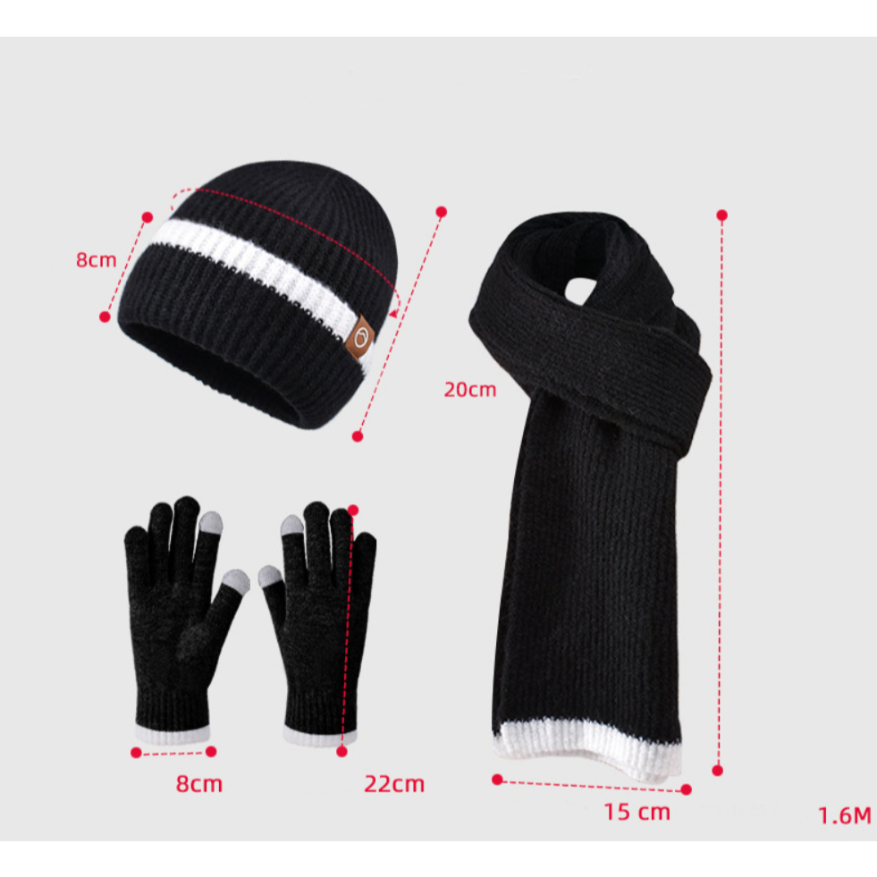 Topi Kupluk Set 3 Pcs Topi + Syal + Sarung Tangan untuk Winter Musim Dingin