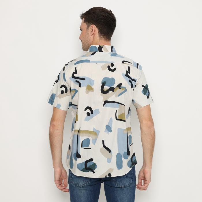Platini Kemeja Motif Pria Lengan Pendek Katun Broken White 132185 Kemeja Pria Lengan Panjang Pendek