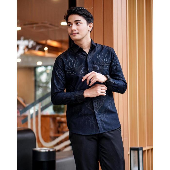 Laskala Batik Premium Wafa Kemeja Batik Pria Slimfit Lengan Panjang Kemeja Pria Lengan Panjang
