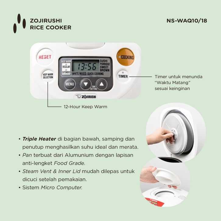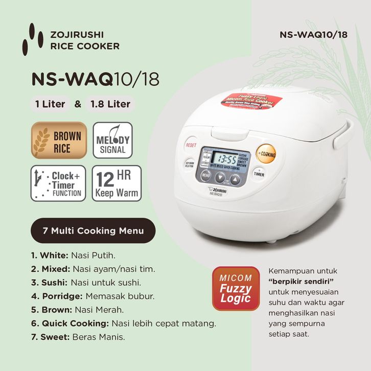 Zojirushi NS-WAQ18 WD Rice Cooker Digital Fuzzy Logic - White [1.8 Liter]