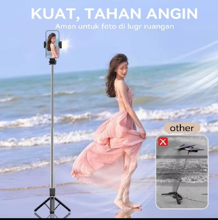 ORIGINAL TRIPOD TONGSIS R1SL 4 IN 1BLUETTOOH LAMPU LED STAINLESS REMOT PANJANG - HITAM TERMURAH !!