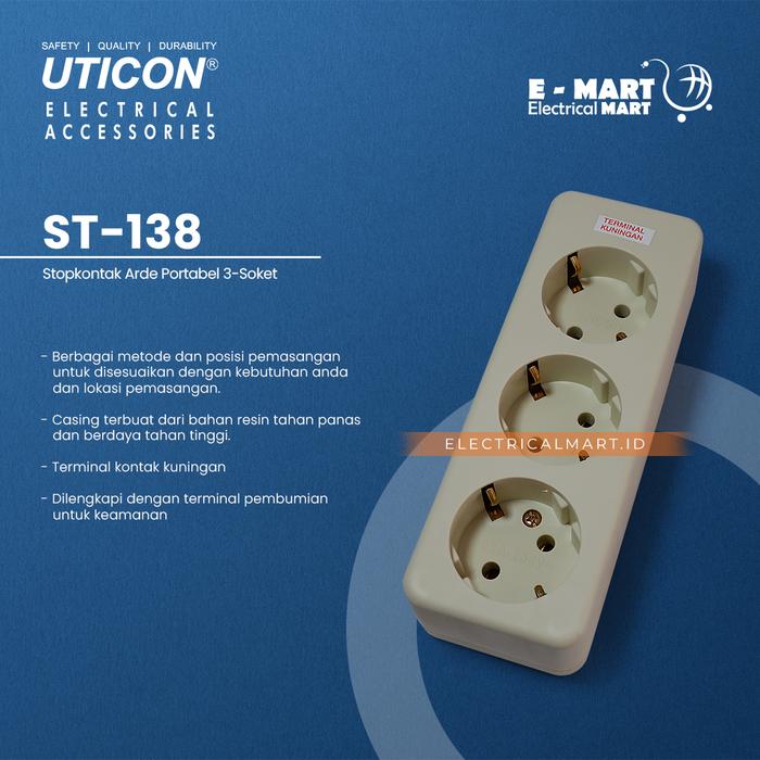 REKOMENDASI UTICON STOP KONTAK 3 LUBANG ST-138 / STOP KONTAK KABEL OLOR TERMINAL KUNINGAN GROSIR - WARNA ORI