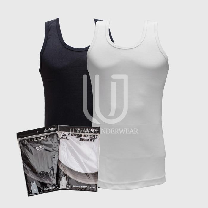 YUK BELI ! PROMO 1PCS DAN 3PCS SINGLET PRIA AGREE | KAOS DALAM PRIA | COWOK KATUN - M, HITAM 1PCS ORI