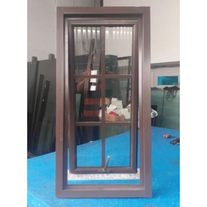 ORNAMEN VINTAGE Jendela Casement Buka Jungkit Alumunium Powder Coating 50cm x 100cm