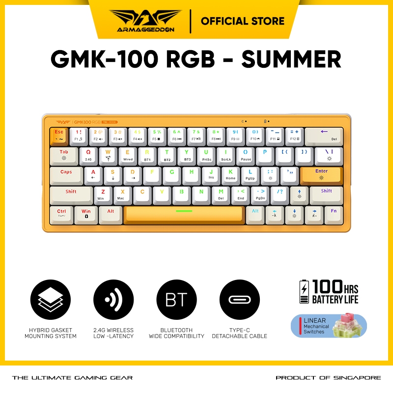 KEYBOARD MECHANICAL ARMAGGEDDON GMK 100 TRIPLE MODE BLUETOOTH RGB 63 KEYS HOT SWAP RECHARGEABLE