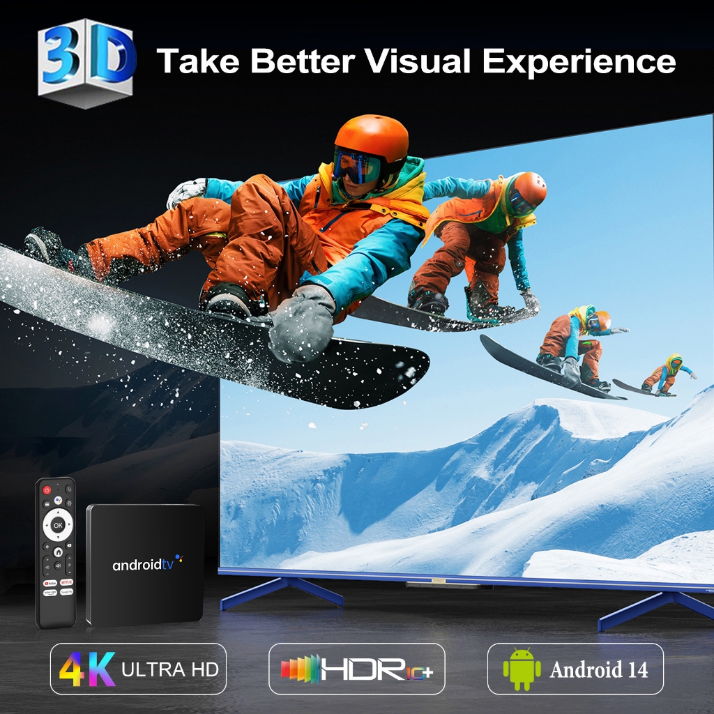 MXQPRO4K Android Tv Android 14.0os WIFI 4gb Ram 32gb Rom STB 4K Smart TV Box Unlock Tv Box Netflix Global
