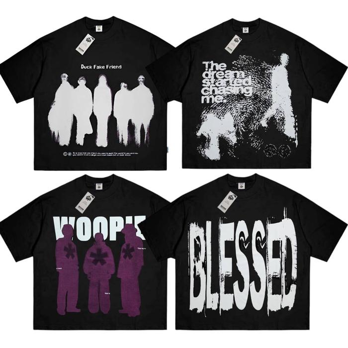 Woopie Project Baju Boxy Fit Pria Wanita Dewasa Oversize Hitam Putih Tshirt Skena Style Motif Keren Kaos Distro Cowok At