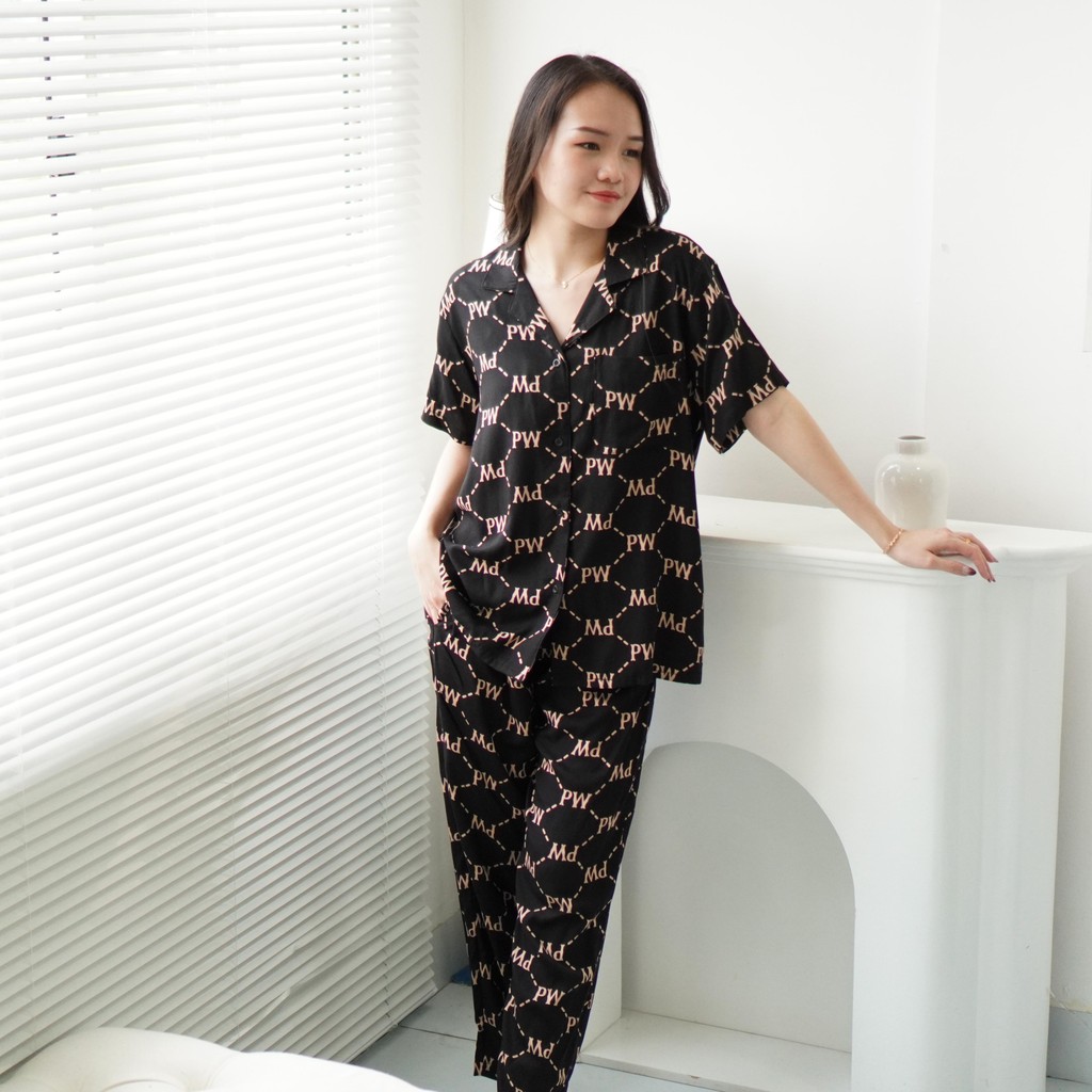 Piyama Rayon PW Wanita Motif Lengan Pendek dan Setelan Celana Panjang - Rayon Baju tidur Busui