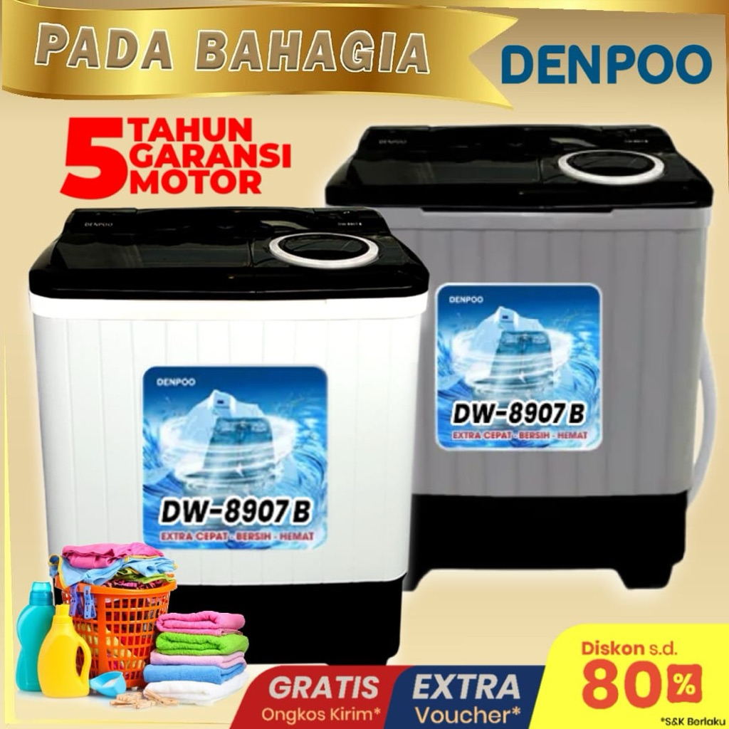 Mesin Cuci 2 Tabung 8 KG DENPOO DW 8907B Turbo Pulsator