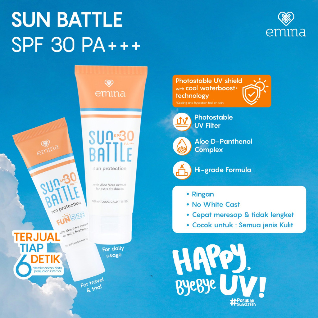Emina Sun Battle SPF 35 PA+++ 50ml Bright Glow Sunscreen UV Protection