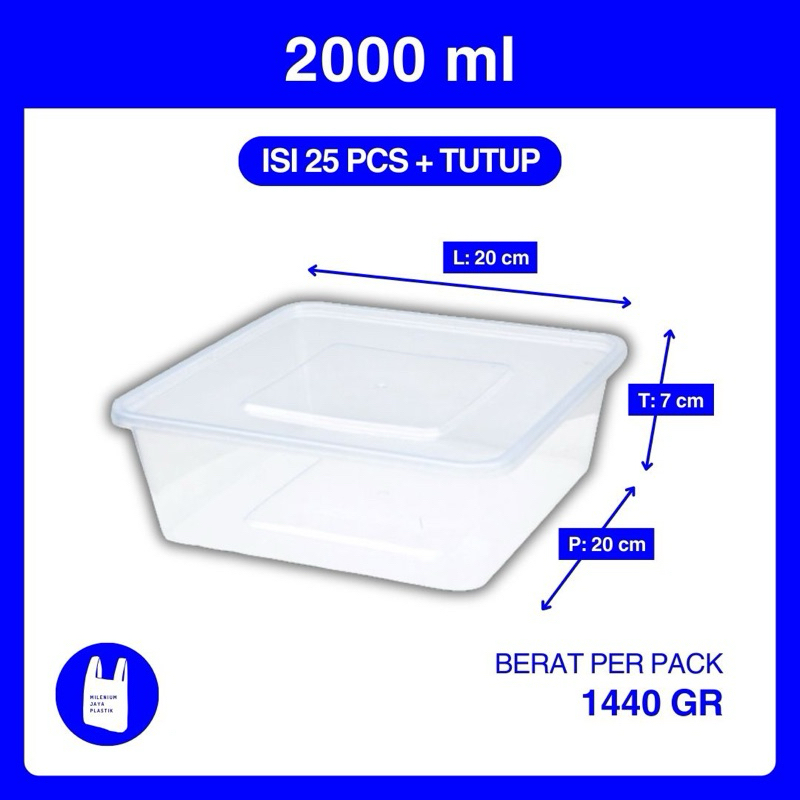 [25 PCS] Thinwall Square 350ml 1000ml 1500ml 2000ml 3000ml Kotak Makan Plastik