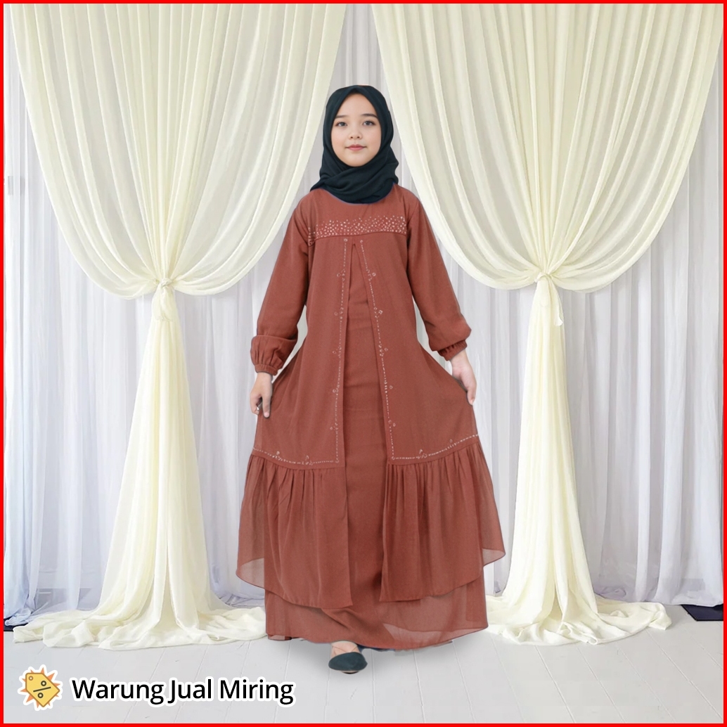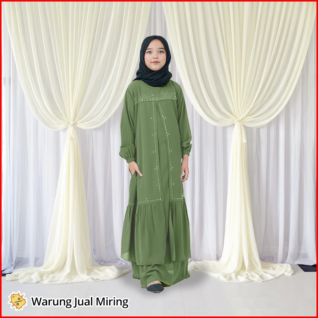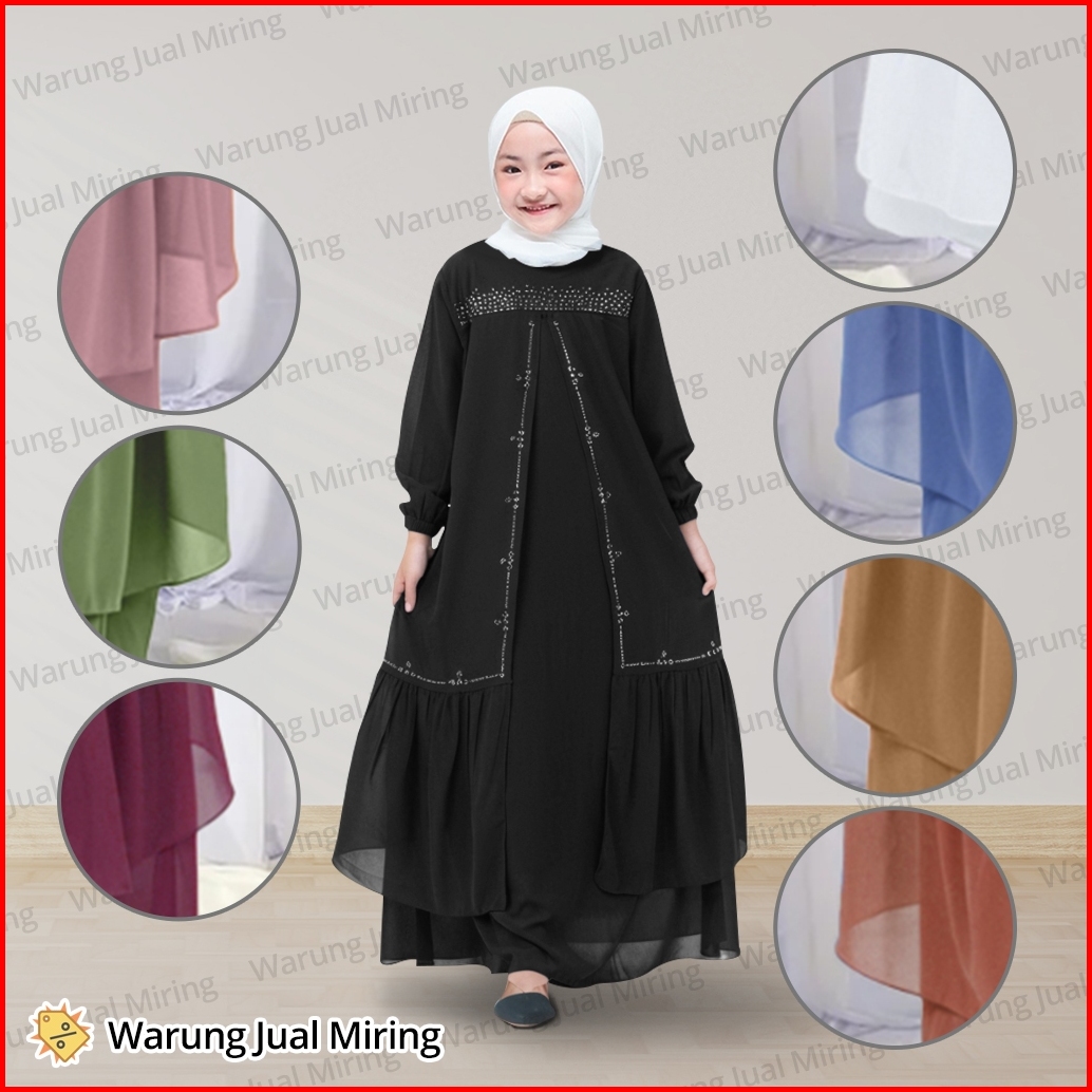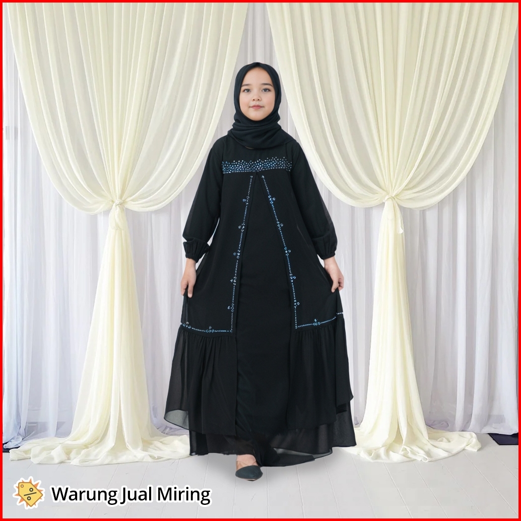 Gamis Anak Zaskia Ceruty Babydoll 2-12 Tahun Dress Baju Muslim Perempuan Viral Kekinian Mewah Elegan Hitam Swarovski Bah