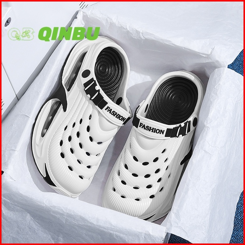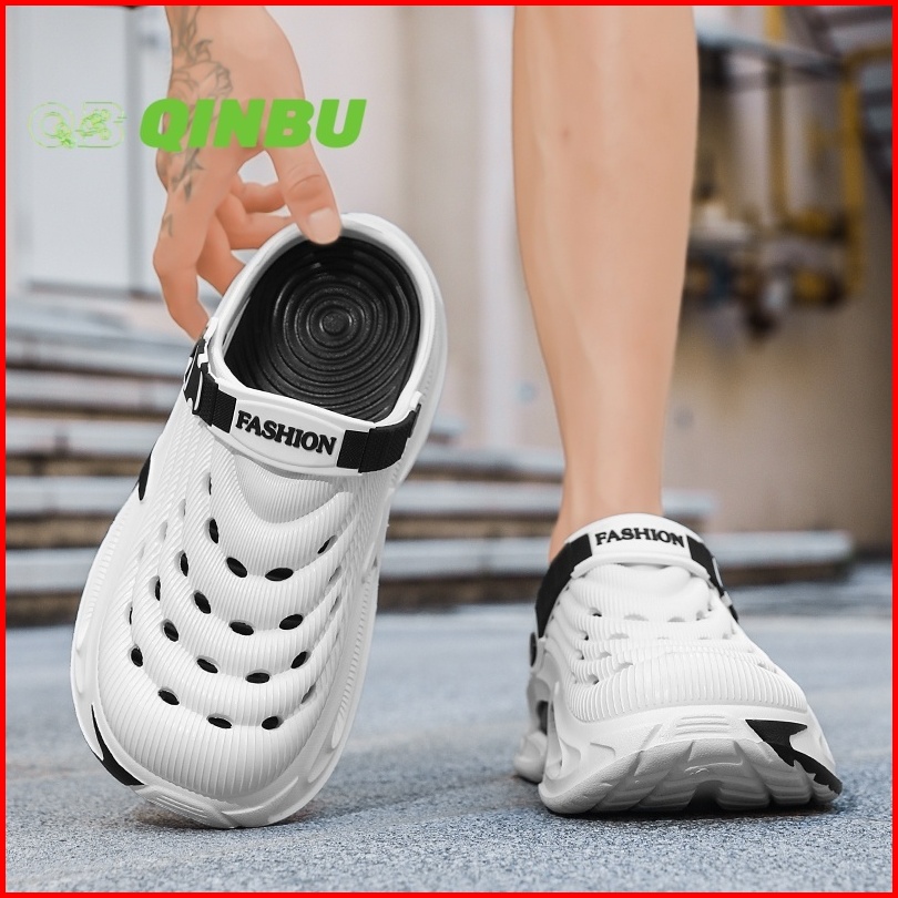 Qinbu Sepatu Sandal Pria Tahan Air Anti Slip Ringan Bernapas Tinggi 5cm Desain Fashion Terbaru Cross