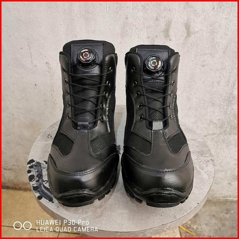 Sepatu Safety Boot Kulit Pria King Rameses Tali Putar Ujung Besi Oil Resistance