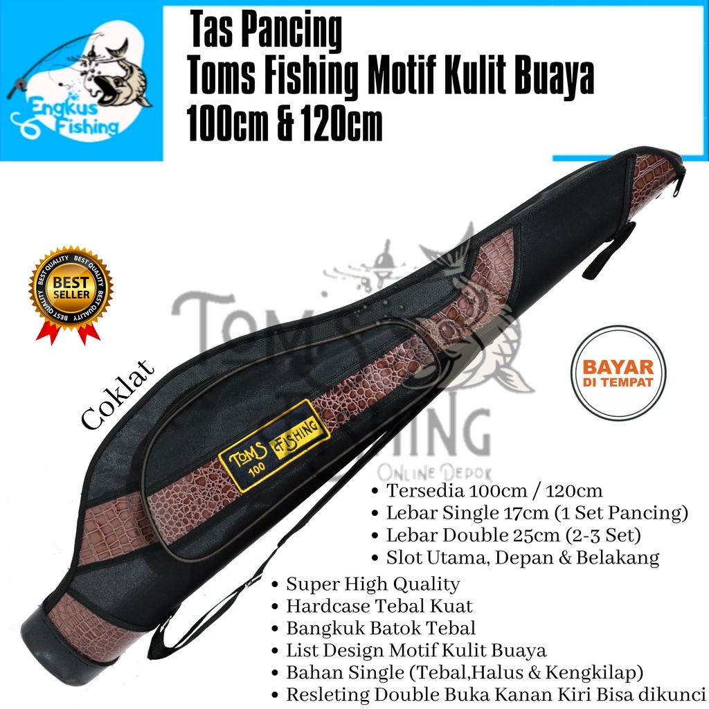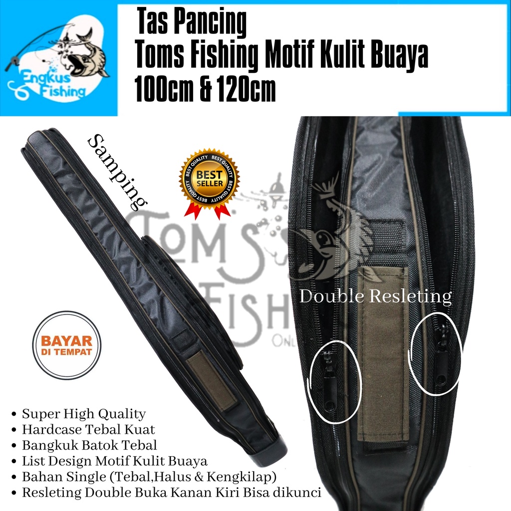 Tas Pancing Toms Fishing Motif Kulit Buaya Hardcase Batok Mangkok 100cm/120cm (Super Kualitas) Double Resleting Murah -