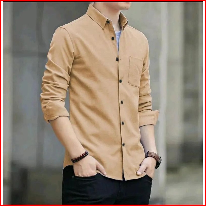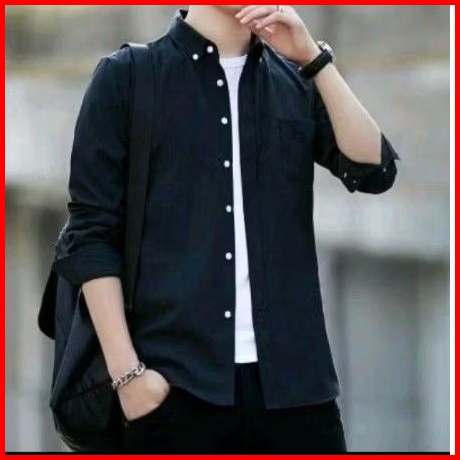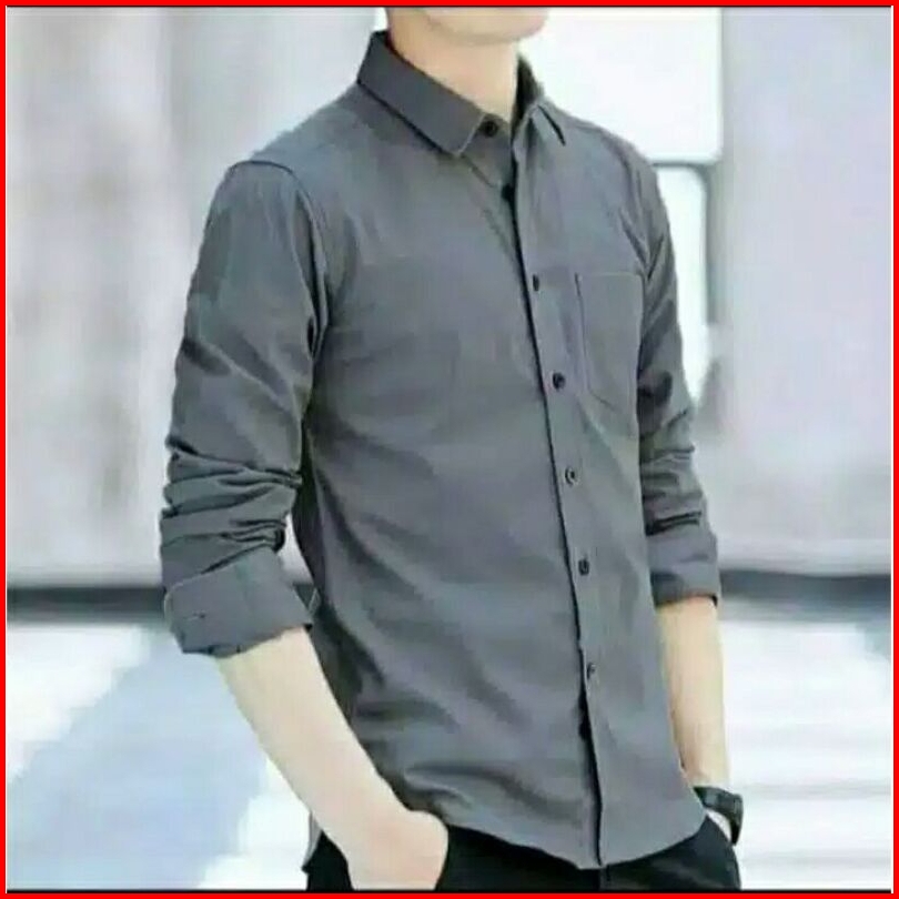Kemeja Polos Pria Lengan Panjang Slim Fit Katun Premium Baju Kerja Kampus Kondangan Kantor Formal Casual