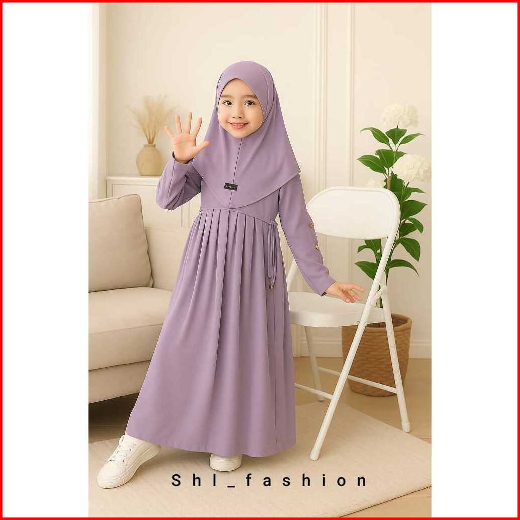 Gamis Abaya Shela Set Hijab Gamis Anak Serut Pinggang Bahan Jersey Premium Usia 1-10 Tahun