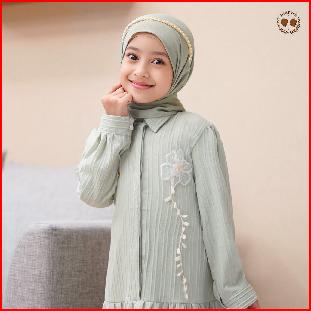 Marves Tsalisa Gamis Baju Muslim Anak Perempuan Bahan Crinkle Elora Usia 1 Hingga 14 Tahun