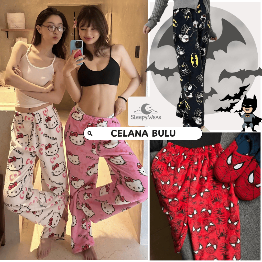 SLEEPY Ready Stock Celana BULU Celana Panjang Wanita Celana Tidur Celana Unisex Celana Couple Celana Santai Celana Piyama Hellokitty Sp