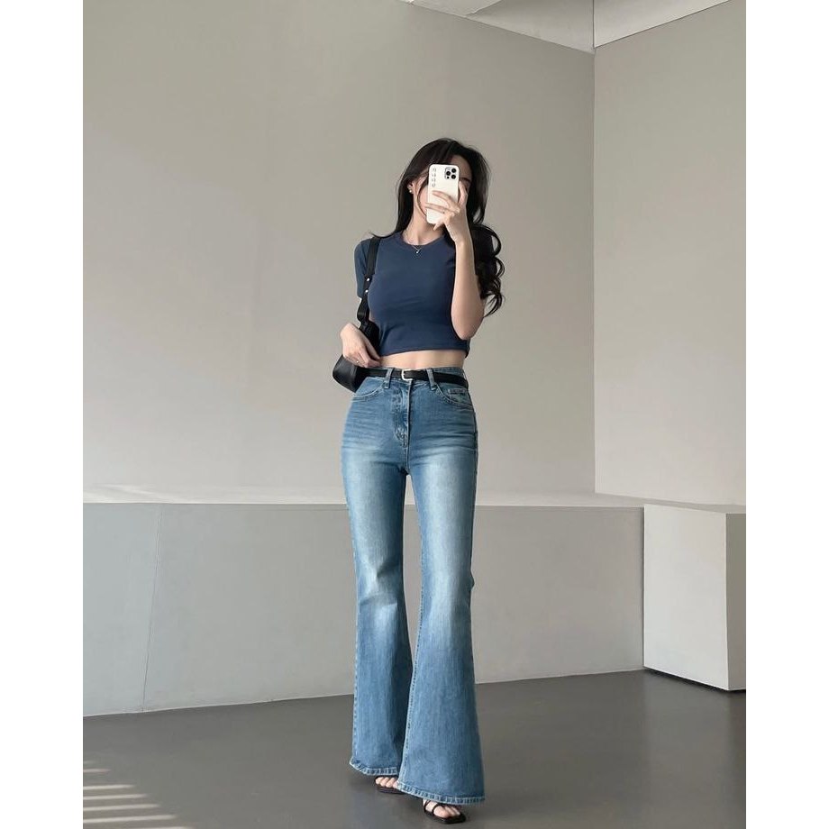 Highwaist Retro Cutbray Jeans Wanita Stretch & Loose