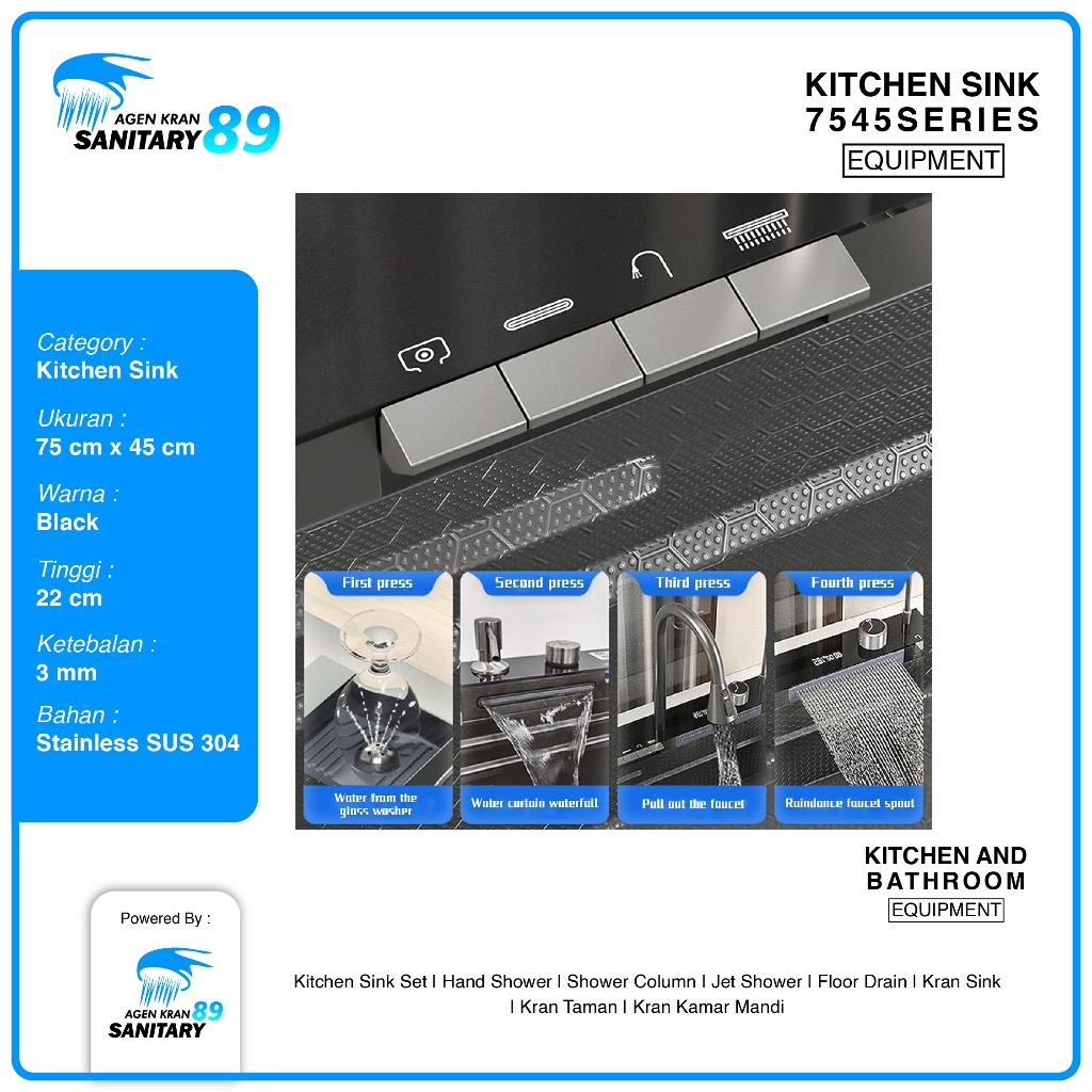 WASTAFEL CUCI PIRING/WASTAFEL CUCI PIRING STAINLESS/LED/KITCHEN SINK MODERN LED PIANO 7545 BLACK AND g0.ld