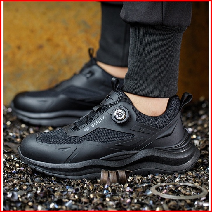 Sepatu Safety Qs 2025 Ujung Besi Tali Putar Simple Shoelace Anti Smash Anti Slip Oil Flexibel Super Ringan Sepatu Safety