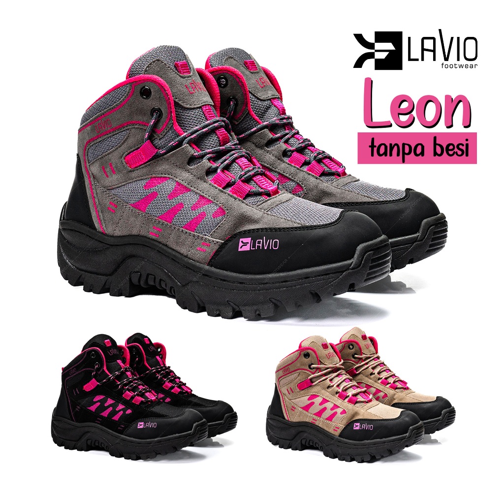 Lavio axel Sepatu Gunung Boots Wanita Cewek women wanita Leon Original Abu Krem Hitam