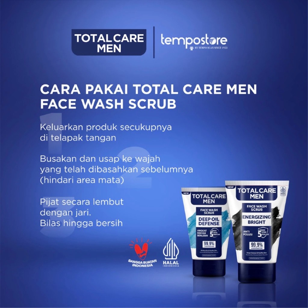 Total Care Men Series Face Wash Scrub Toner Serum Sunscreen Shampo Deodorant | Merah Jingga Official