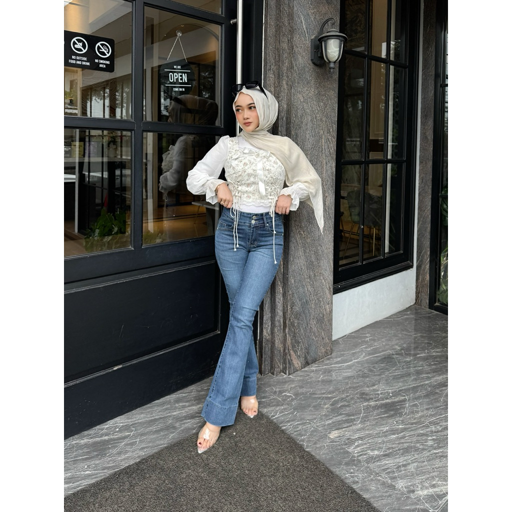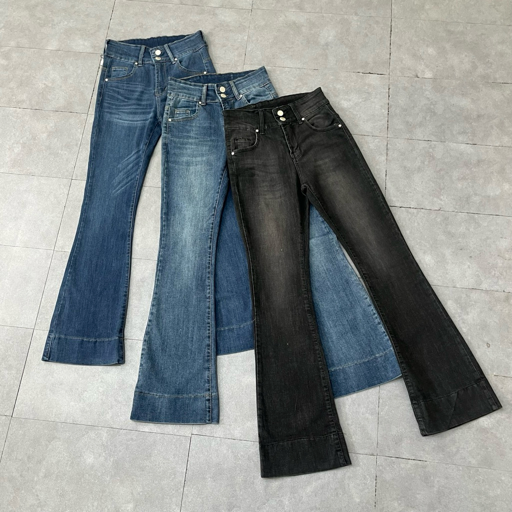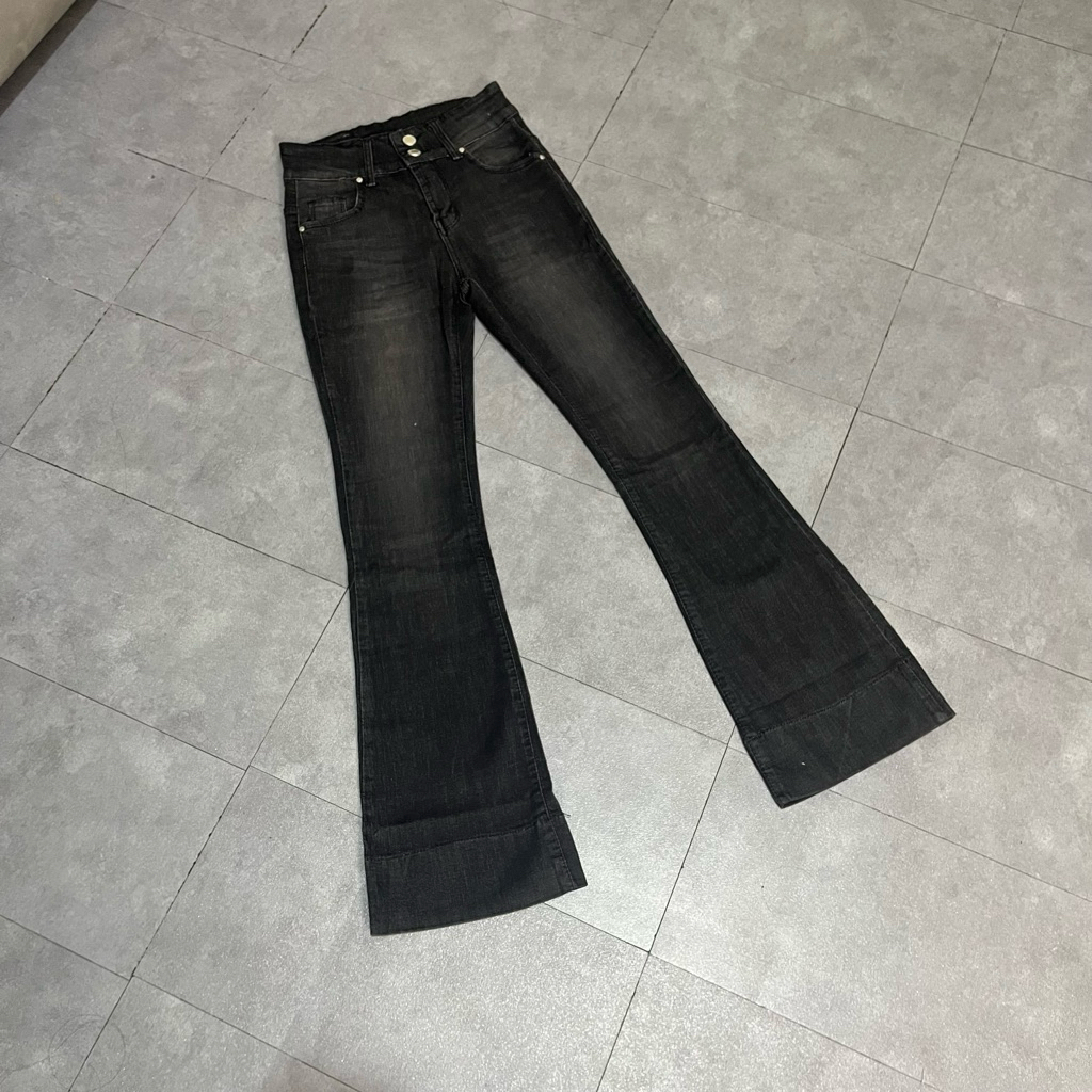 HAZEE - Maxy | Celana Jeans Wanita Highwaist Cutbray Panjang Bahan Melar HW Kancing 2 Ready Stok