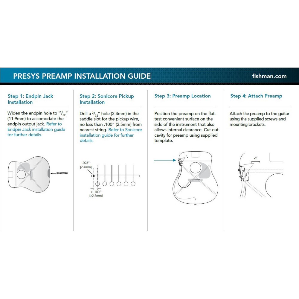 Equalizer Gitar Fishman Preamp Gitar 301 4-Band EQ Mic Blend Tunner Gitar Akustik Fishman Presys