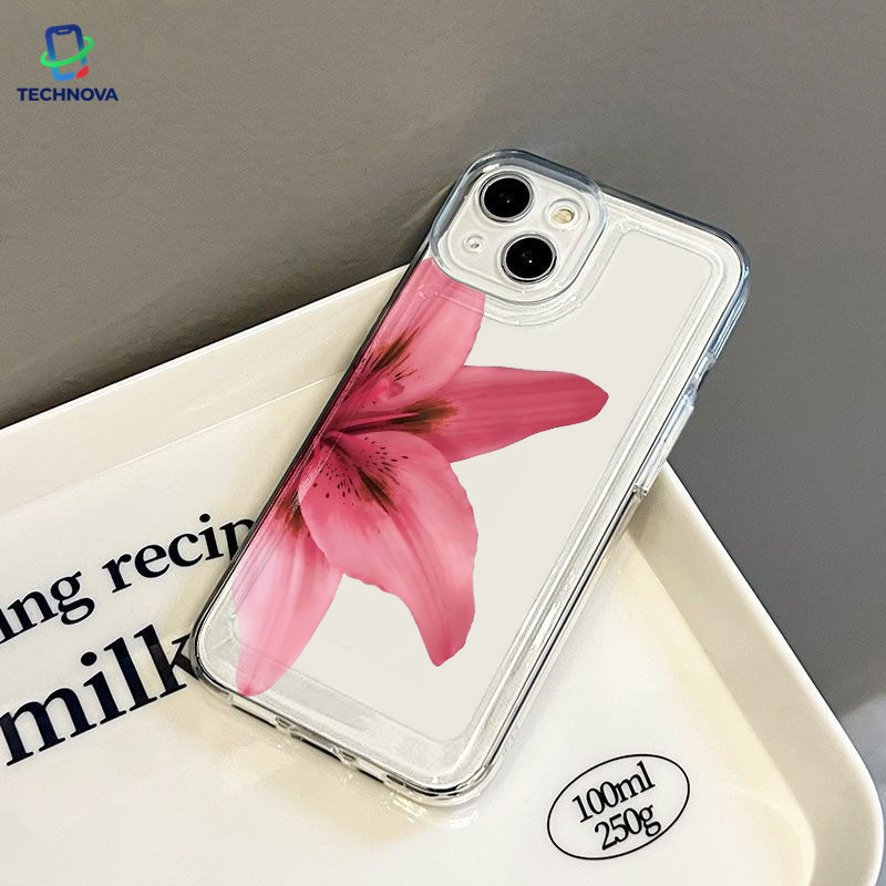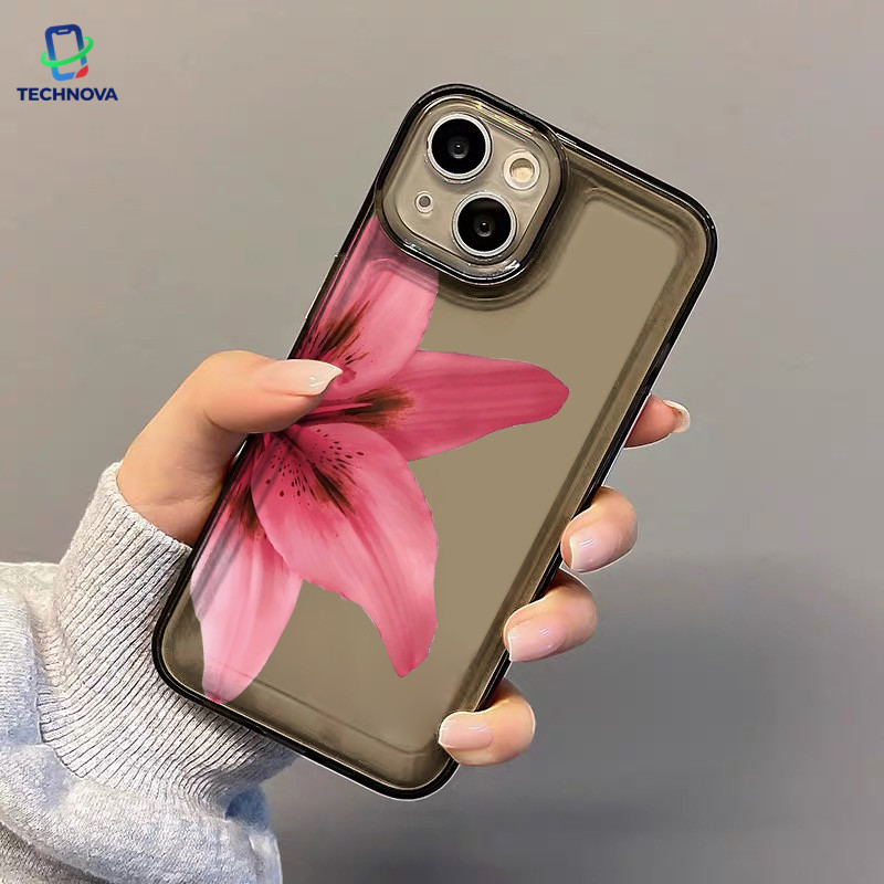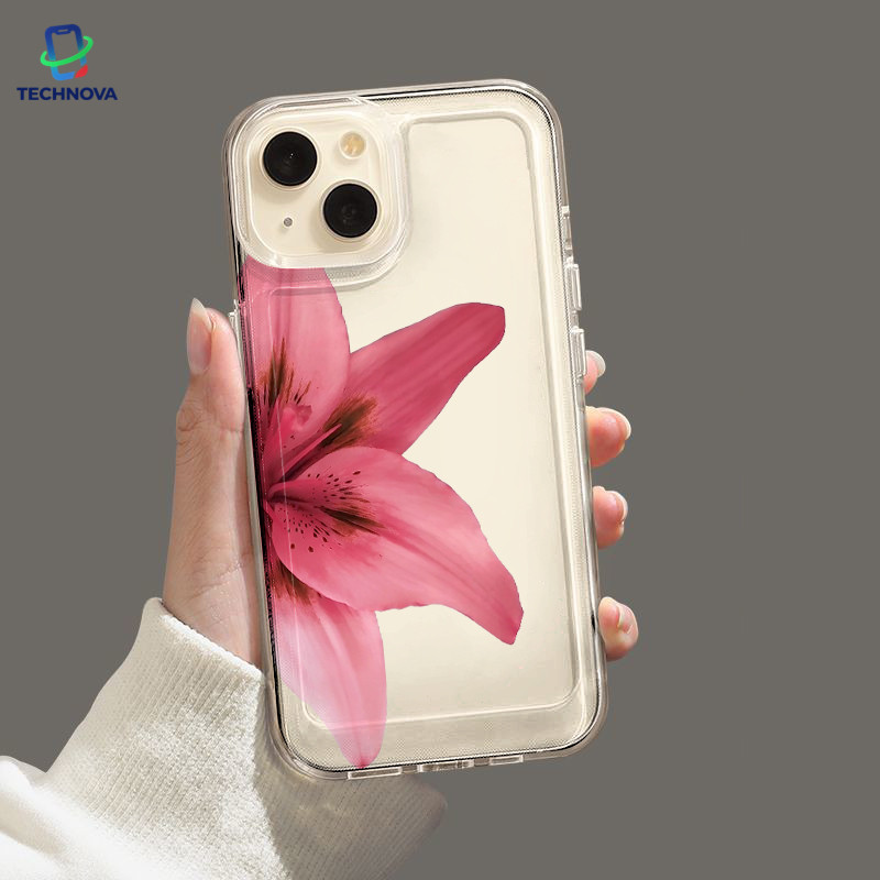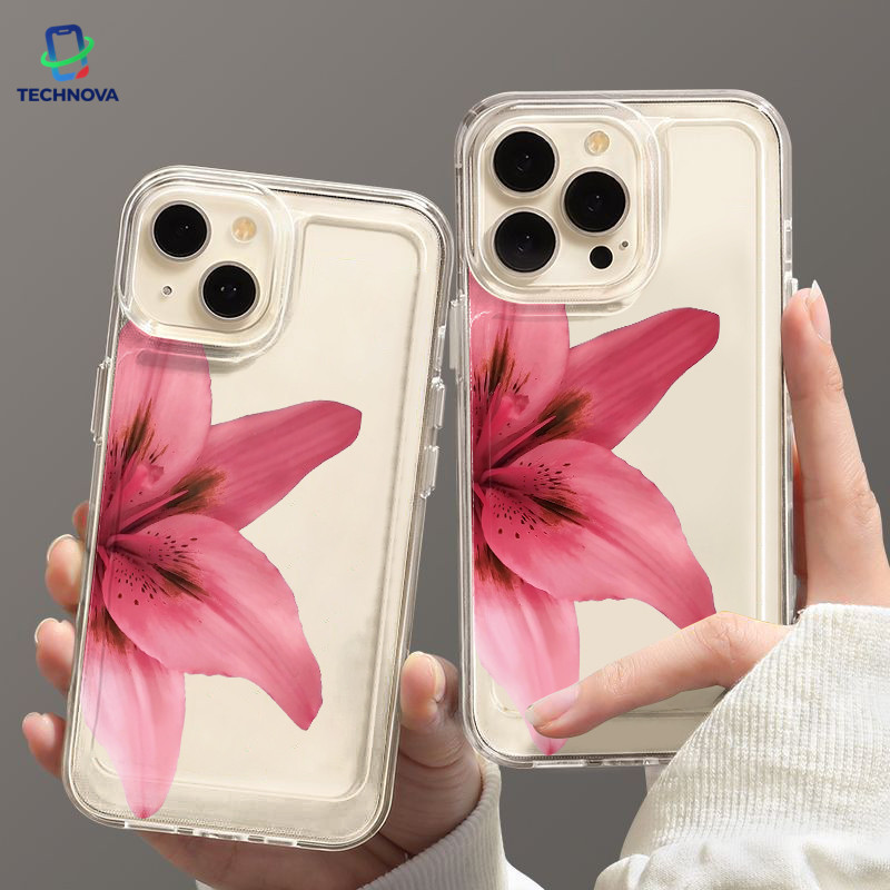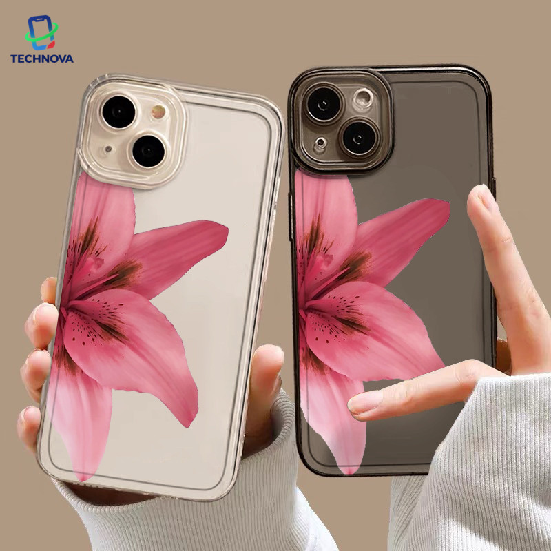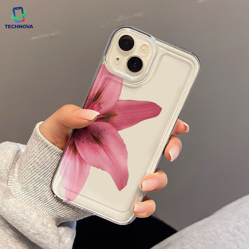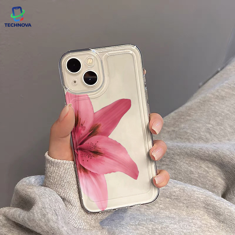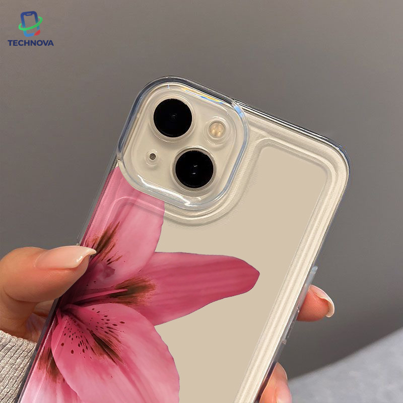 Casing IPhone Setengah bunga Transparan Soft Case Fashion Cocok untuk iPhone 11 12 13 14 15 16 Pro Max X XR XS Max 7Plus 8Plus-TA