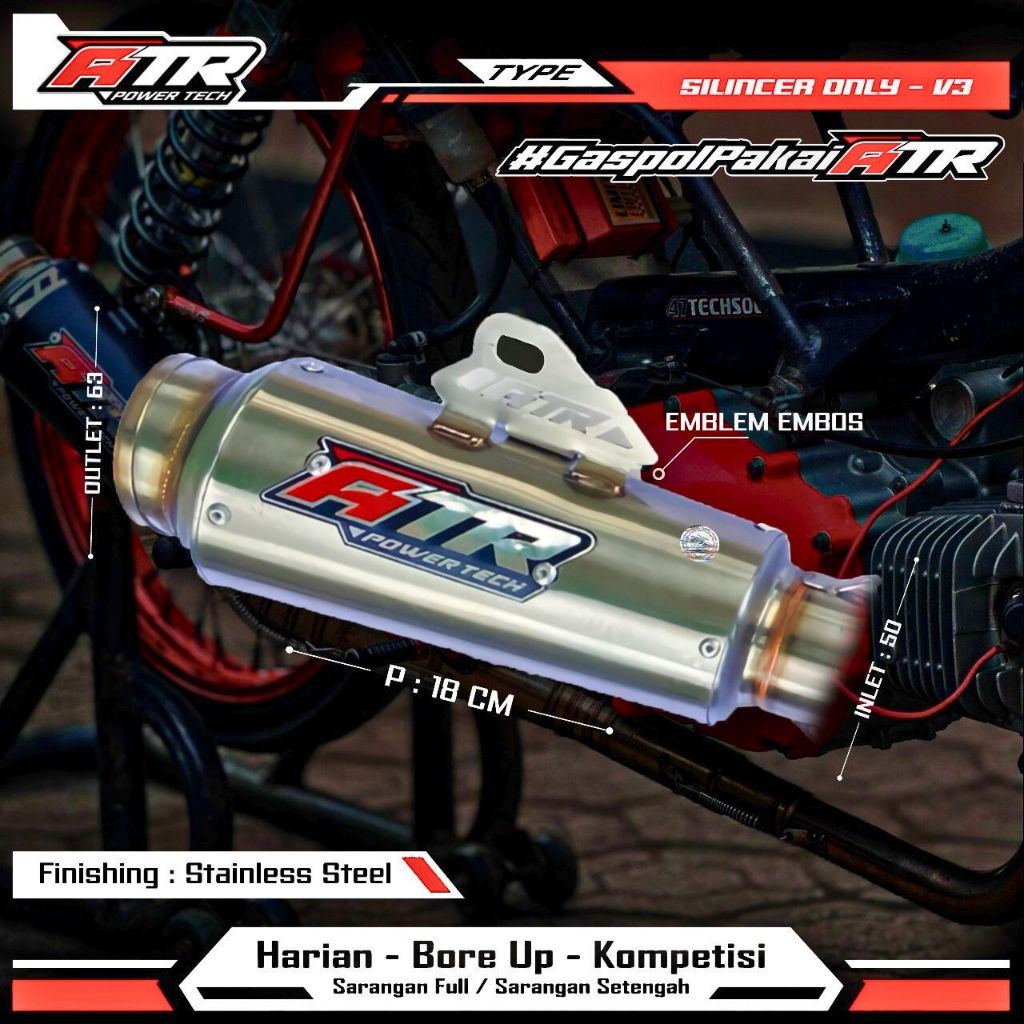 Silincer Knalpot Original Atr Power Tech - Tipe V3 Suara Gahar - Inlet 50 . Best Seller AtrPowertech