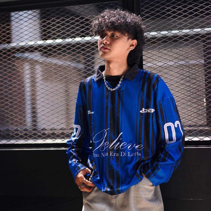 Believediagemsae - Oversized Jersey Boxy Longsleeve Nerazuri Blue And Black - M