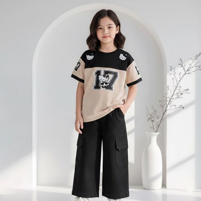 Setelan Jersay Anak Viral Usia 1-12 Tahun Model Terbaru Celana Cargo Lengan Pendek Trendy 2025 Dengan Desain Karakter Lu
