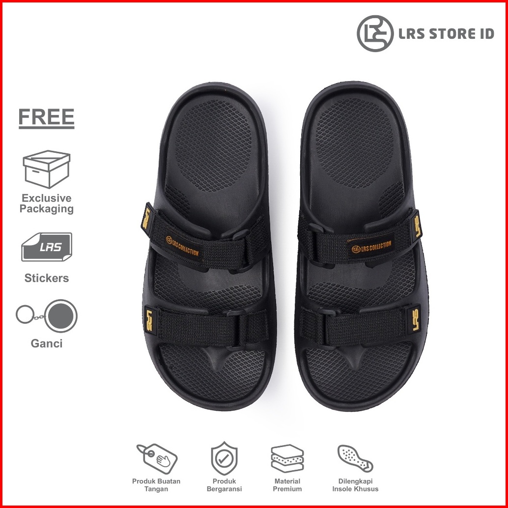 Lrs Store Id - Sandal Pria Arnoud Black Yellow Sandal Casual Slop Lrs Sandal Pria Selop