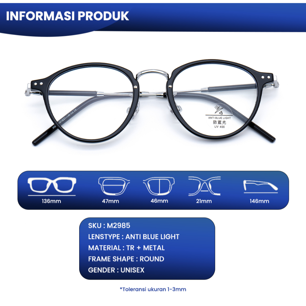 IOOI Kacamata Fashion Terbaru Photocromic Bulat MetalTR Anti Radiasi kacamata minus photocromic pria wanita original