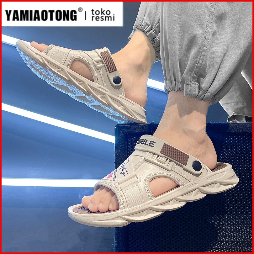 Yamiaotong Sandal Pria Keren Original Karet Empuk Pakaiankasual Pria Gaya Korea Terbaru Sendal Anti-slip