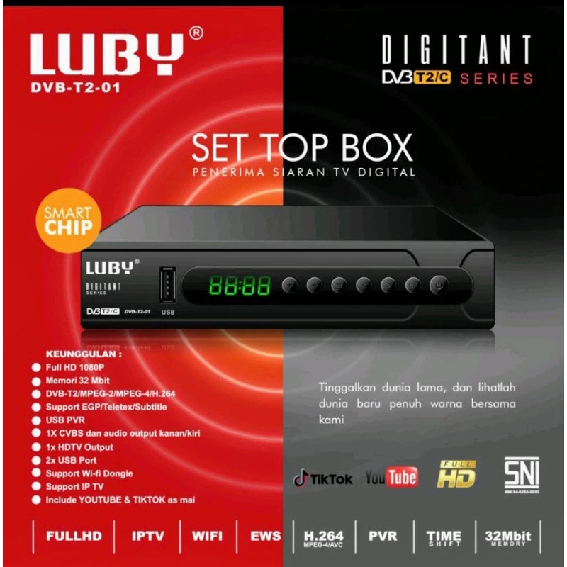 Set Top Box STB LUBY 01/02 & STB EVERCOSS DVBT2 Penerima Siaran TV Digital garansi resmi