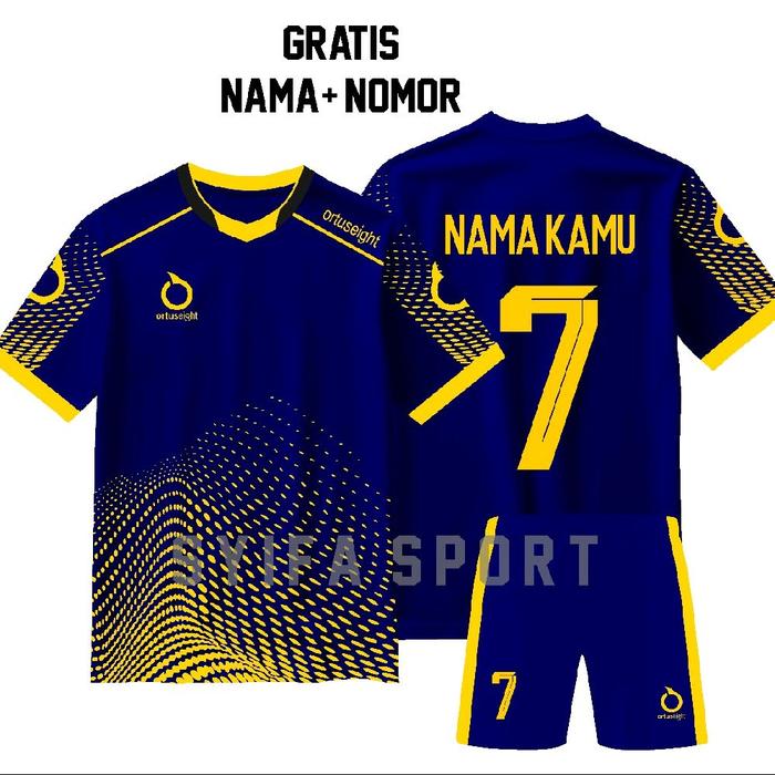 Baju Futsal Gratis Nama Nomor Anak Laki-Laki Perempuan Kaos Olah Raga - Navy Kuning, Xl+Sablon