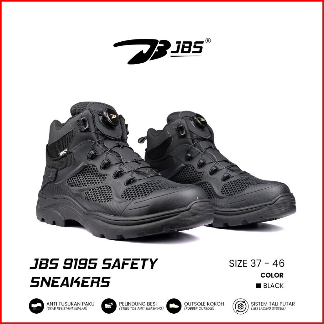 Sepatu Jbs 9195 Sepatu Safety Sneakers Tali Putar Pelindung Baja Anti Tusuk Paku Kevlar