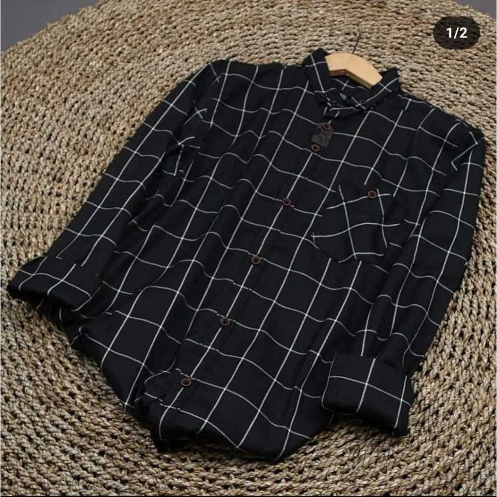 KEMEJA FLANEL VETERANO ATASAN PRIA WANITA KOTAK KOTAK GARIS LENGAN PANJANG BAHAN SUPER