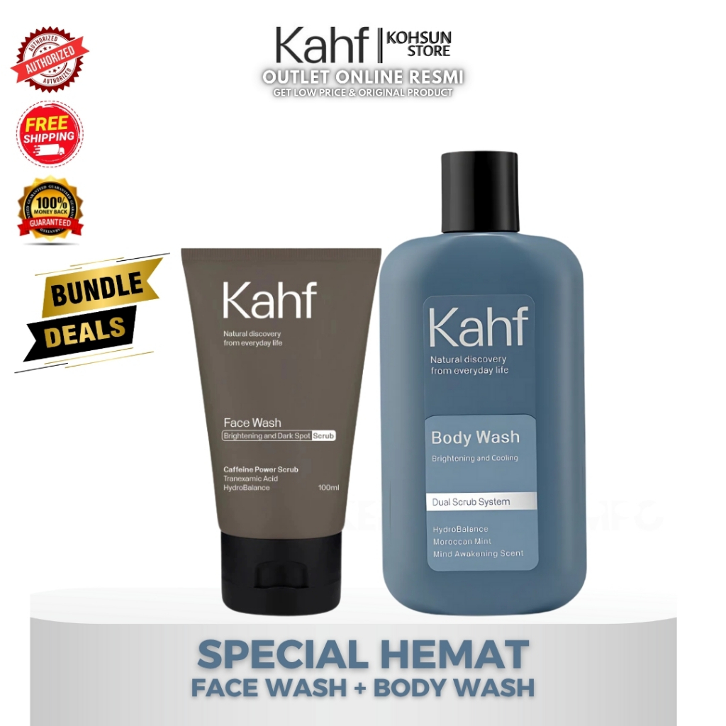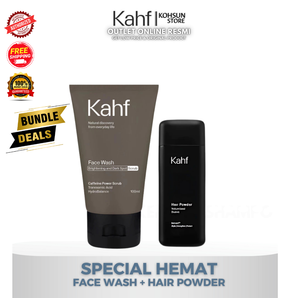 Kahf Brightening Grooming Dark Spot Scrub Isi 2 + Pomade / Deodoran / Bodywash - Sabun Wajah Pria