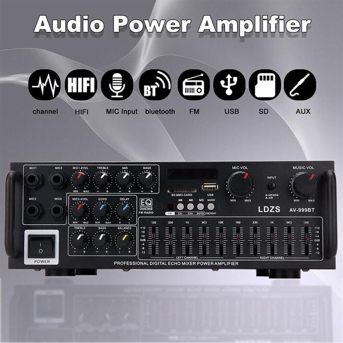 NOIR AMPLIFIER AV-999BT STEREO HIFI BLUETOOTH AUDIO MUSIC PLAYER HOME KARAOKE CAR SD/USB MICKIM&TECH