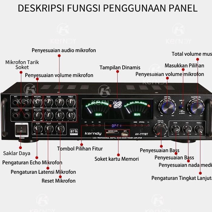 AMPLIFIER KERNDY AV-777BT BLUETOOTH STEREO AUDIO CHANNEL 5.1 KARAOKE HOME THEATER AMPLIFIER AV-777BT