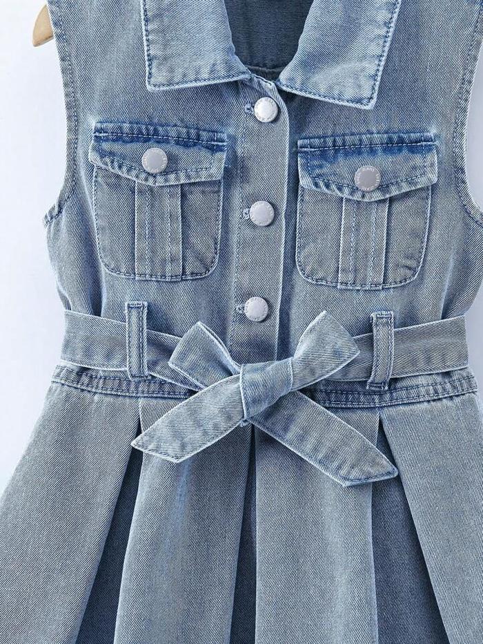 Clara Dress - Twisty Ruffle Dress Belt Jeans Anak Perempuan Usia 1-7 Tahun Setelan Denim One Piece Terbaru - Light Blue,