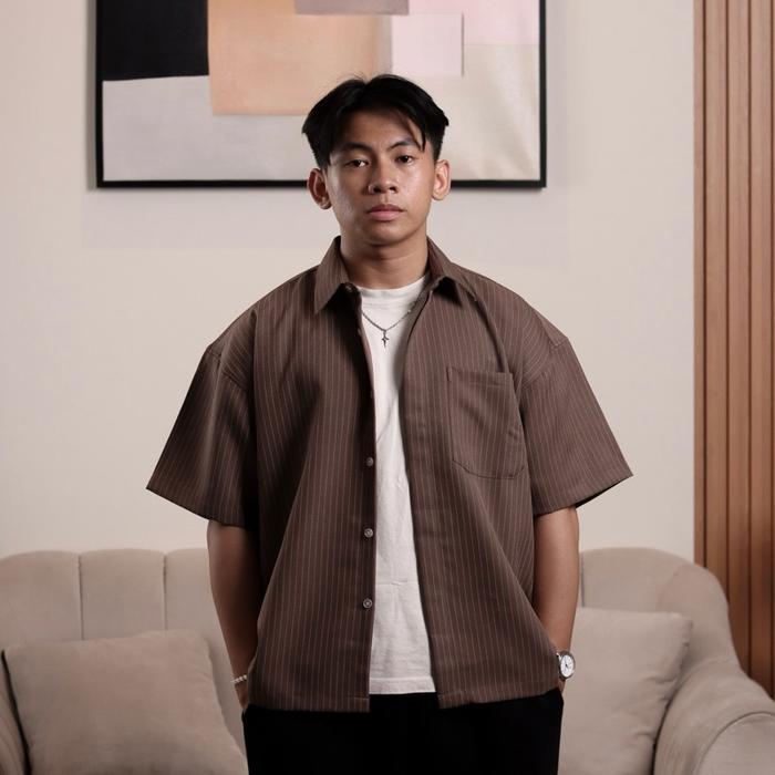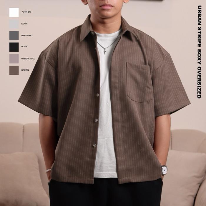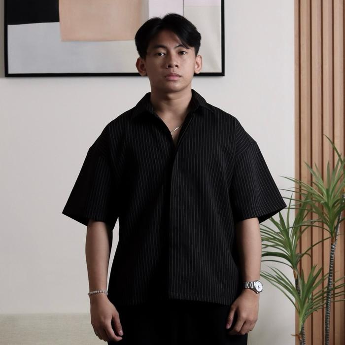 Heyplain Urban Stripe Boxy Oversized - Kemeja Stripe Oversized - Hitam, S