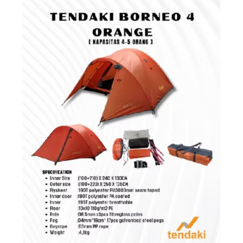 Tenda tendaki Borneo 4 / tenda double layer / tenda camping hiking outdoor traveling / tenda kapasitas 4 orang
