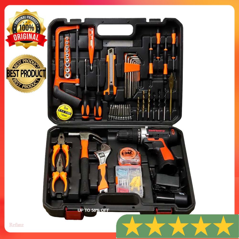 Alat Perkakas Set Lengkap Bor Listrik Palu Tang Obeng Kunci Pas 102 in 1 Taffware TZ168