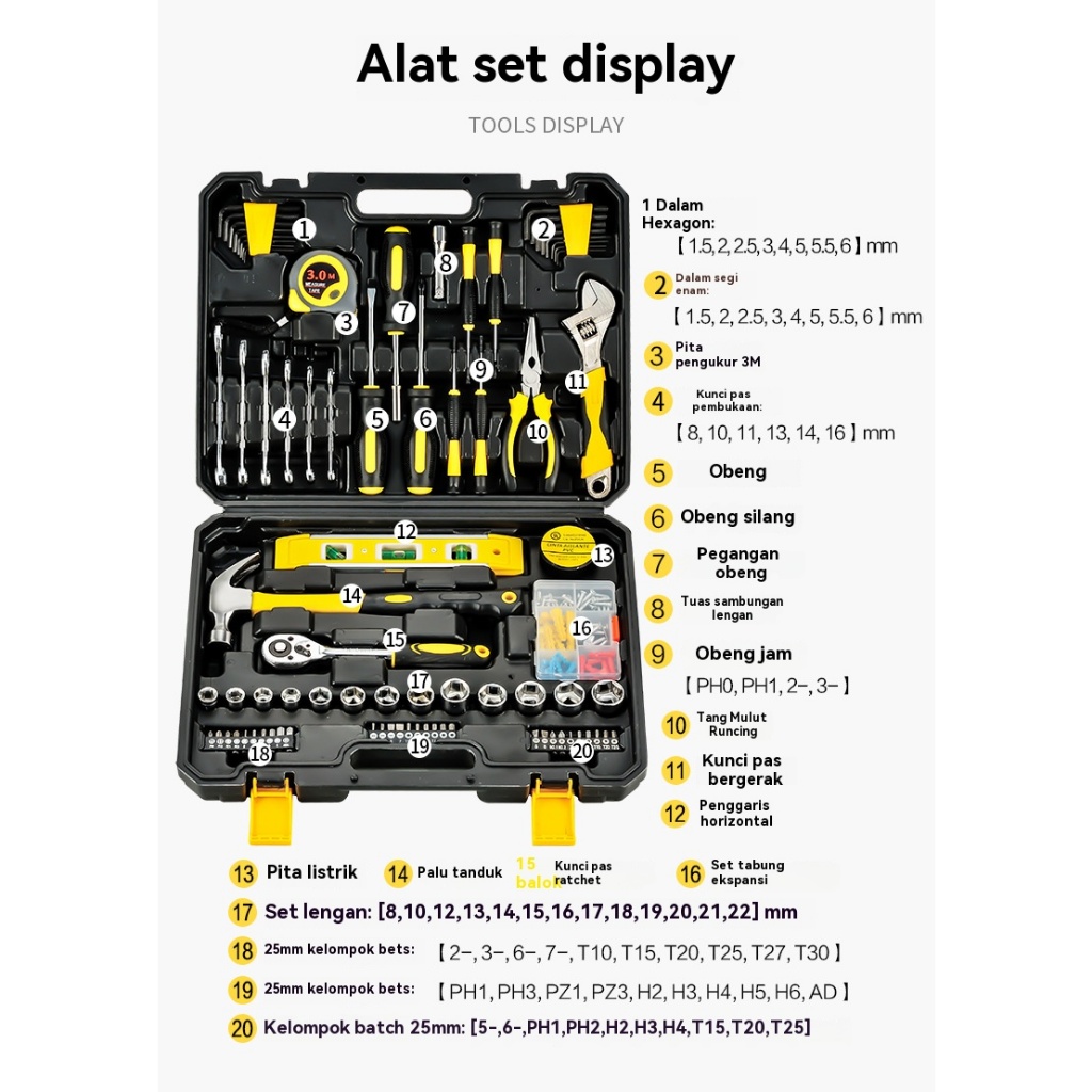 REAIM kunci set lengkap 108PCS Hand Toolset Rumah Tangga Tool Kit Set