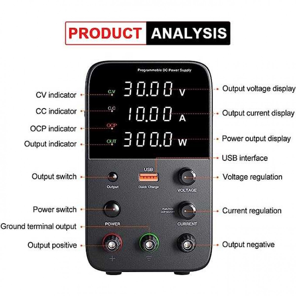 Power Supply Arus DC Adjustable Ammeter Stabilized Layar Digital 30V5A